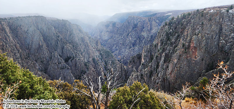 The snow started as a rumor in the wind, bright specks drifting sideways across the rim, as if someone sifted sugar over a dark cake and then wandered off to watch. We had just wrapped up a long stint of archaeological fieldwork in Delta, Colorado, feeling chilled but content, and slipped away after the project was done for a half-day to Black Canyon National Park in Colorado before trekking home to Washington State. That first look over the edge made my stomach drop in the best possible way, like a roller coaster that never quite ends.